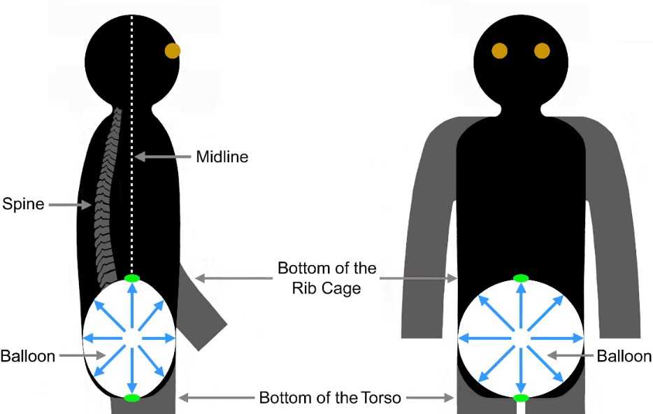 You’ll imagine an empty balloon halfway between your navel and backbone.  You’ll keep your chest still as you inhale slowly through your nose inflating the balloon in all directions  You feel it push your navel forward and your sides outward.  You’ll feel it press back gently against your kidney area.  You’ll feel it press up against the bottom of your rib cage and down against your perineum at the bottom of your torso behind your genitals.  You’ll hold your full breath without locking muscles.  Then, you’ll exhale allowing the balloon to slowly deflate.  Read this again.  Then practice with the audio.
